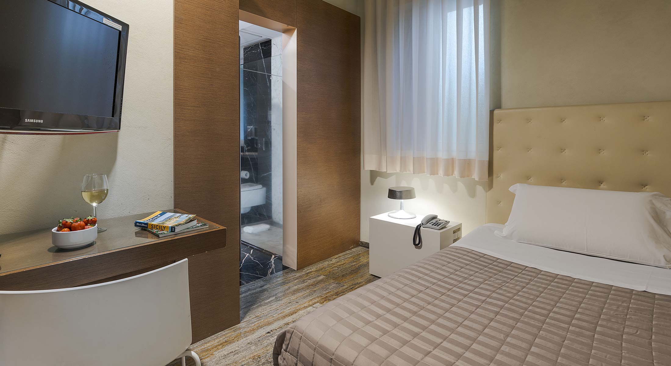 La camera singola del nostro hotel è pensata per chi cerca un soggiorno moderno, funzionale e confortevole. L’arredamento minimalista e raffinato crea un ambiente perfetto per chi viaggia da solo, combinando praticità e stile in un’unica soluzione.
